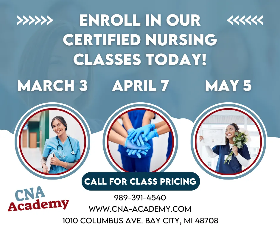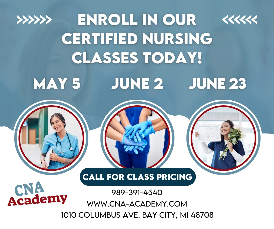 Become a Certified Nursing Assistant @ The C.N.A. Academy in Bay City, Michigan.